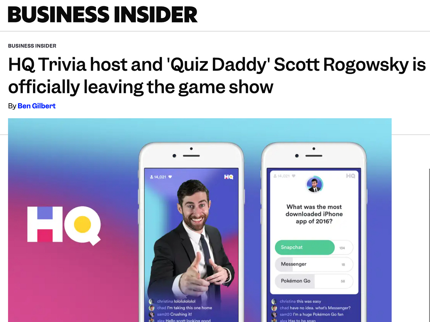 Fittingly, the episode that would come to stand as my final sign-off from HQ Trivia (March 24, 2019) was co-hosted by a man no stranger to strained employer relations himself: Gilbert Gottfried.
