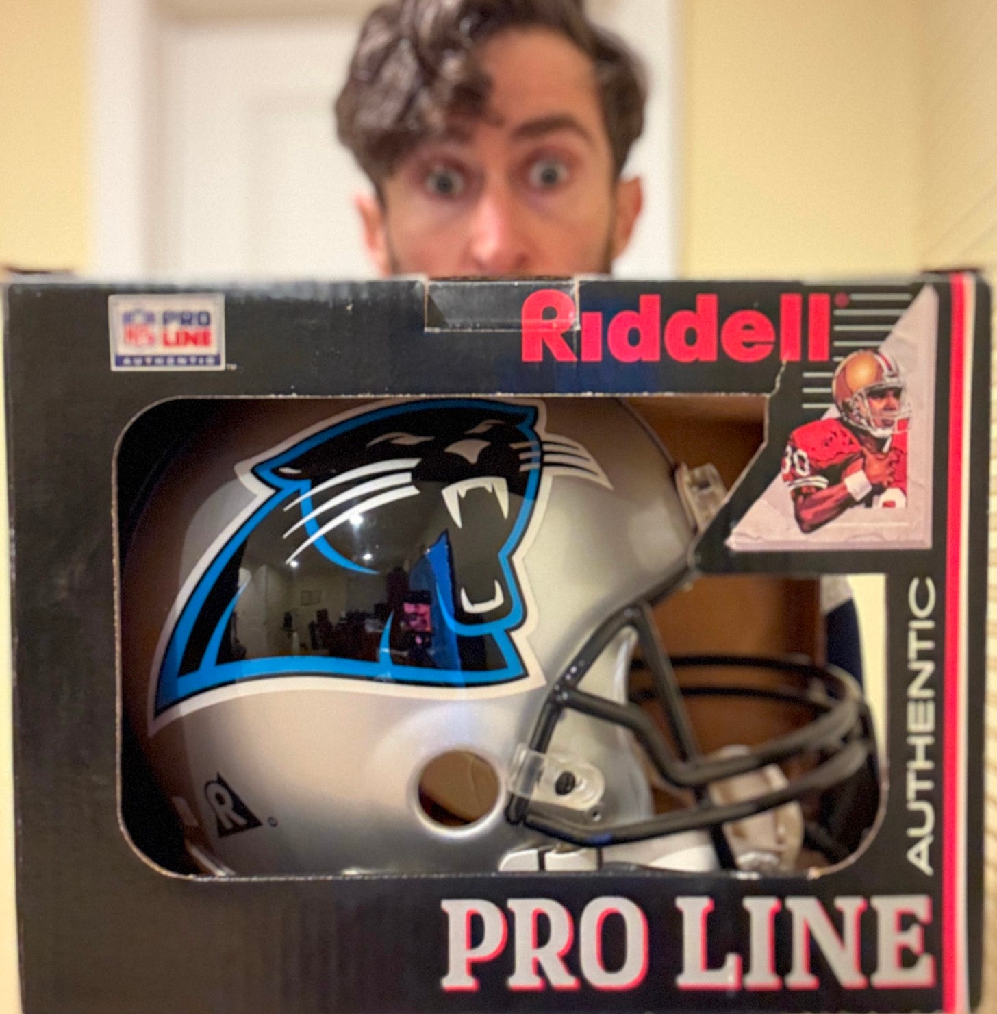 It’s November 1997 and Dad has a connect to someone who works at Riddell — official supplier of the NFL’s concussion caskets helmets. He asks me to pick the one team whose ProLine Authentic helmet I’d wish to own: “Carolina Panthers.” Of the hundred or so Bar Mitzvah gifts I receive, none is more memorable.