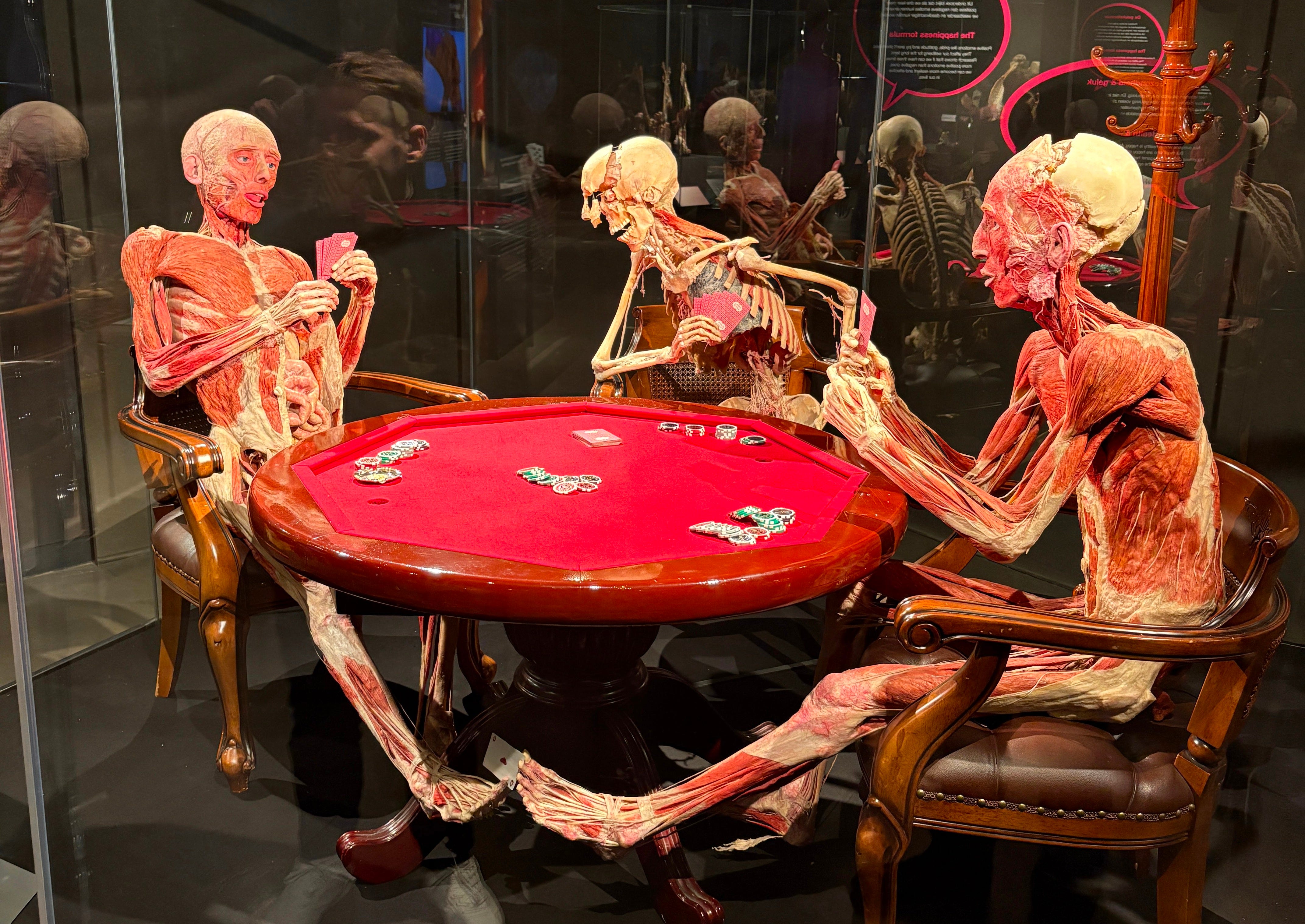 Yesterday I met some new colleagues downtown for dinner. With time to kill before our reservation, we collectively made a sober, deliberate decision to visit Gunther von Hagens’ BODY WORLDS — something I’ve forever referred to as “The Bodies Exhibit,” despite that not being the name of this original spectacle nor the more recent touring knock-off Bodies: The Exhibition). We had all been well aware of the existence of this exhibit for decades — I even devoted a ‘chunk’ of my early stand-up set to it — but none of us had ever… cared enough? found the courage? had a free hour in Amsterdam with absolutely no clue of what else to do?